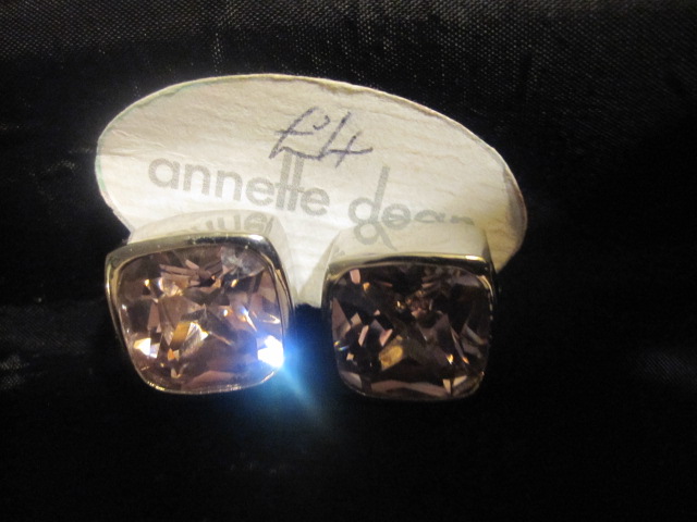 Pictures of the earrings below....they are purple in colour....xxx (sory for the ashen hands....too much light ....uhhhh on black skin.....uhhhh!!!!....xxx)